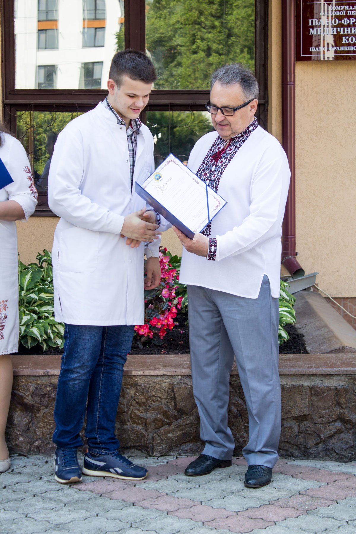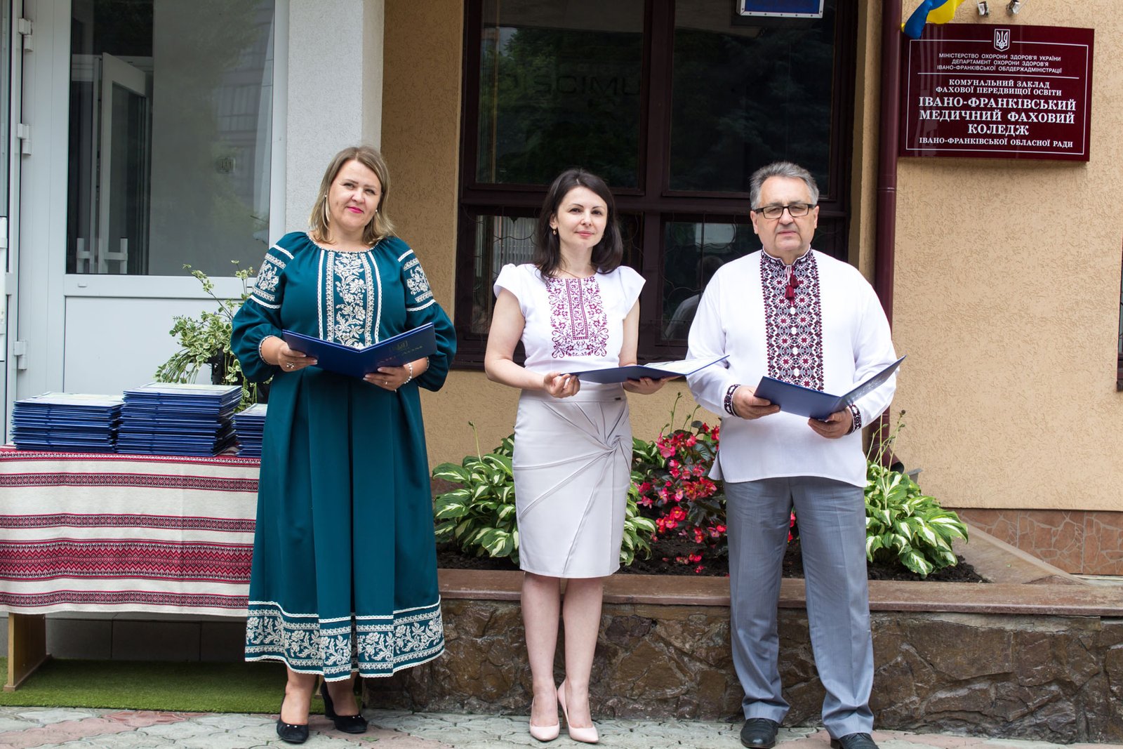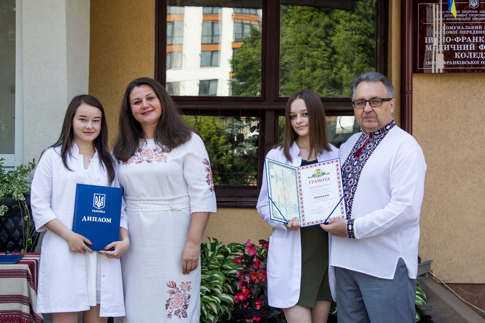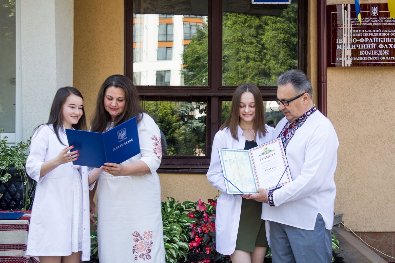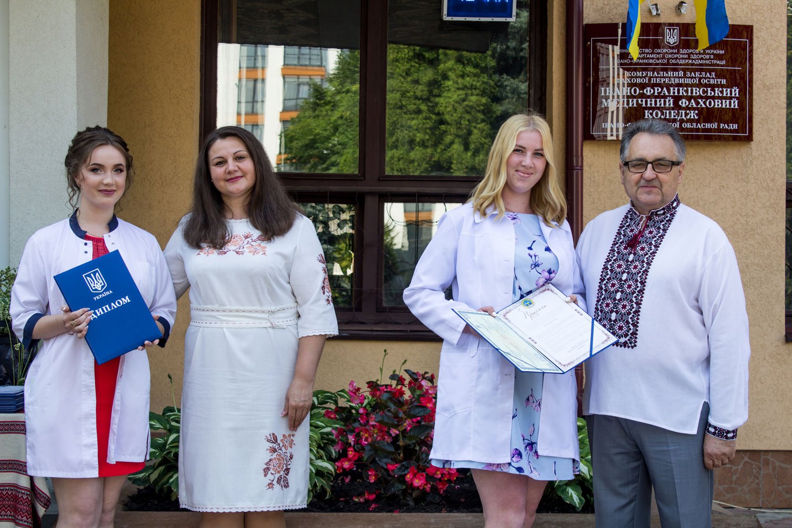 Відкривала урочистості заступник директора ІФМФК з виховної робота Наталія Валеріївна Мальованчук. Після виконання Гімну України наказ про присвоєння кваліфікації фельдшерів і медсестер та отримання дипломів молодших спеціалістів оголошувала заступник директора з навчально-методичної роботи Олександра Денисівна Воєвода. Дипломи вручали директор медичного коледжу, колишній випускник цього навчального закладу, який закінчив медичне училище рівно пів віку тому, Володимир Васильович Стасюк, завідувачка фельдшерсько-акушерського відділення Альона Миколаївна Валовіна і завідувачка медсестринського відділення Олеся Василівна Сухоручко, помічниця директора з кадрової роботи, голова профкому Наталія Михайлівна Мельник.