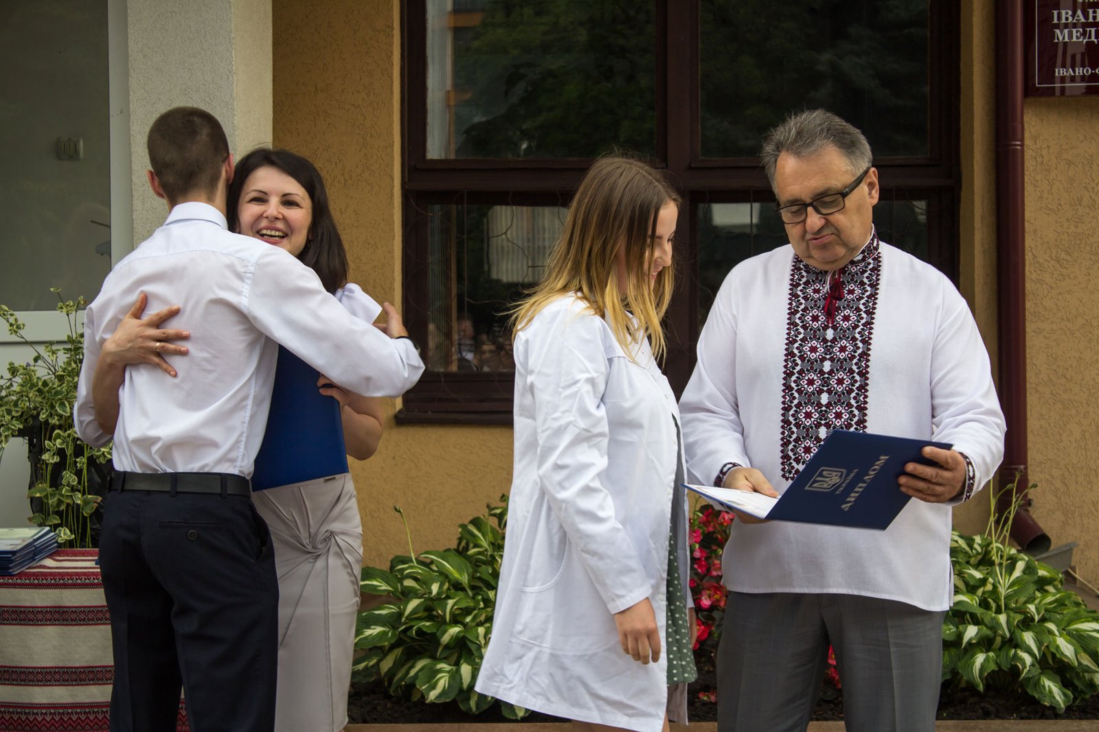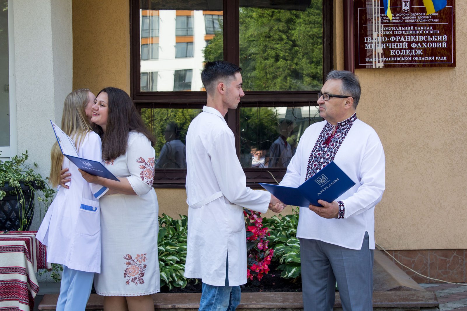 Та і після отримання дипломів випускники не поспішали розходитися. Хтось робив світлини у фотозоні, хтось дарував квіти улюбленим викладачам, хтось спілкувався з однокурсниками, уже колишніми. А поряд у коледж заходили абітурієнти, які лише здають документи для вступу і які мріють про навчання в Івано-Франківському медичному фаховому коледжі.