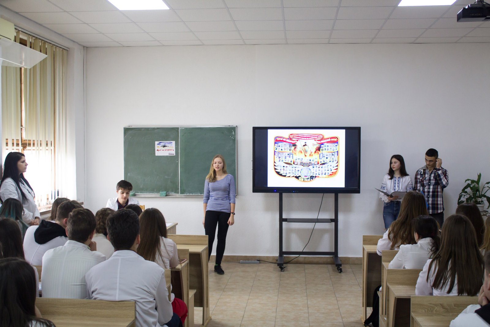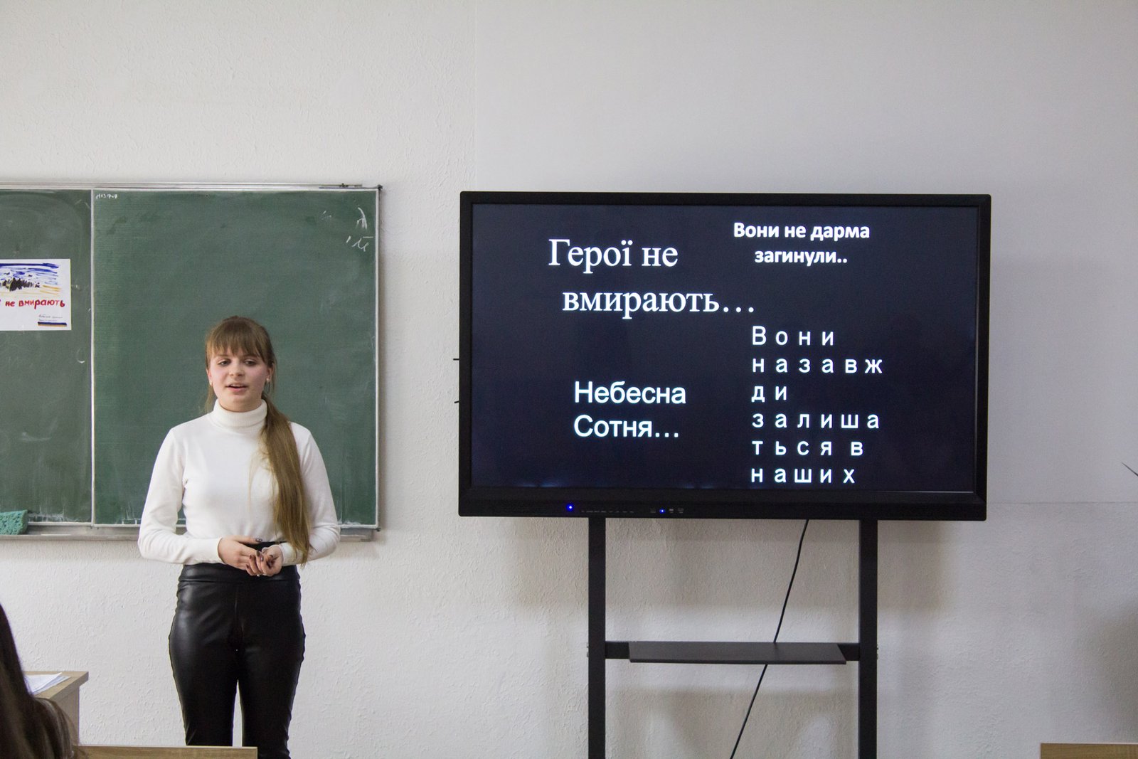 А студенти групи І-5 підготували відкриту виховну годину, приурочену увічненню пам'яті Героїв Небесної сотні. Вони зворушливо, зі сльозами на очах, сприймали інформацію про подвиг майданівців, розмірковували про значення Євромайдану, який став символом Свободи, наголошували, що Революція Гідності є дороговказом для нинішнього і прийдешнього поколінь. Згадували усіх тих, хто у 2013-2014 роках загинув у Києві, продемонструвавши приклад самопожертви в ім’я України.