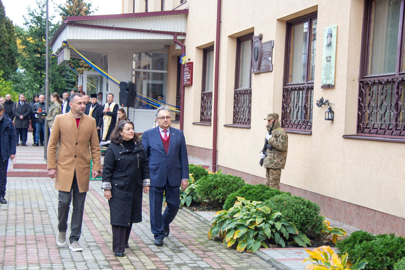 На вшанування пам’яті Героя прийшли його рідні, друзі, представники міської влади, працівники, викладачі і студенти, з фронту приїхали побратими і посестри. На подвір’ї перед коледжем вишикувалися першокурсники у військовій формі. Під звуки Гімну України було піднято синьо-жовтий прапор – так розпочали меморіальні заходи з відкриття пам’ятної дошки загиблому Герою.