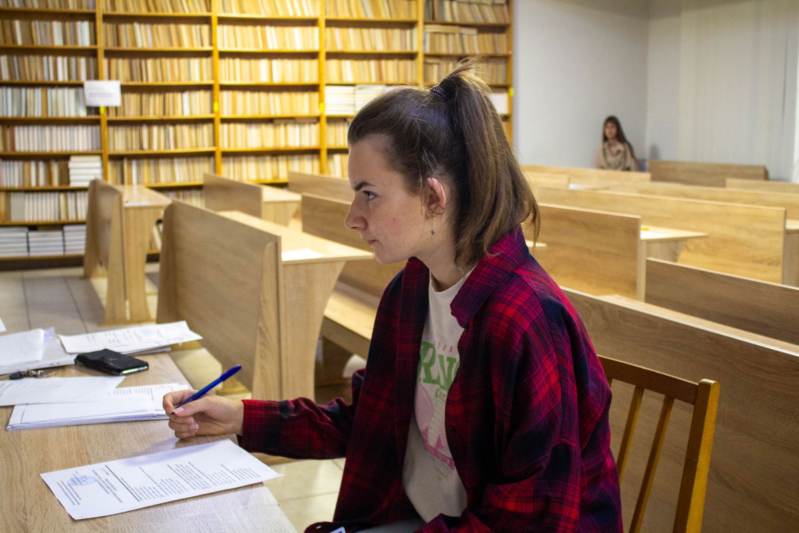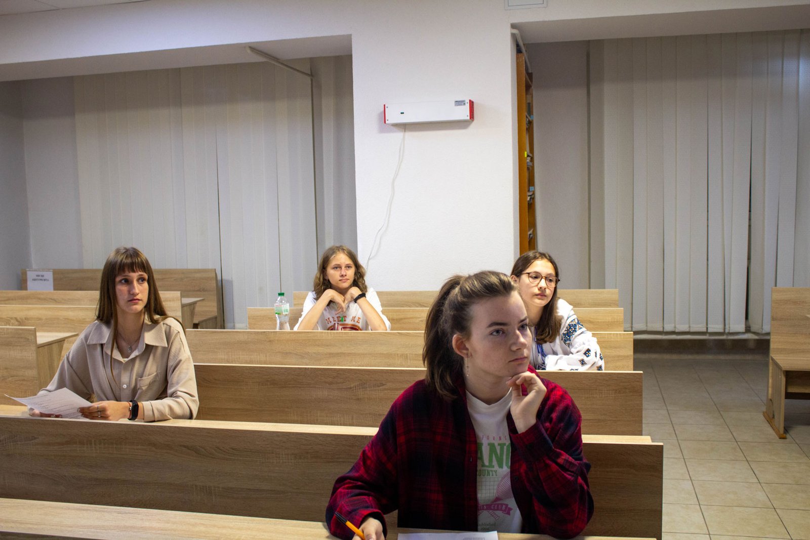 Задля безпеки абітурієнтів співбесіда проходить в укритті на нульовому поверсі. На щастя, попередні дні вступних випробувань минули без сирен повітряної тривоги.