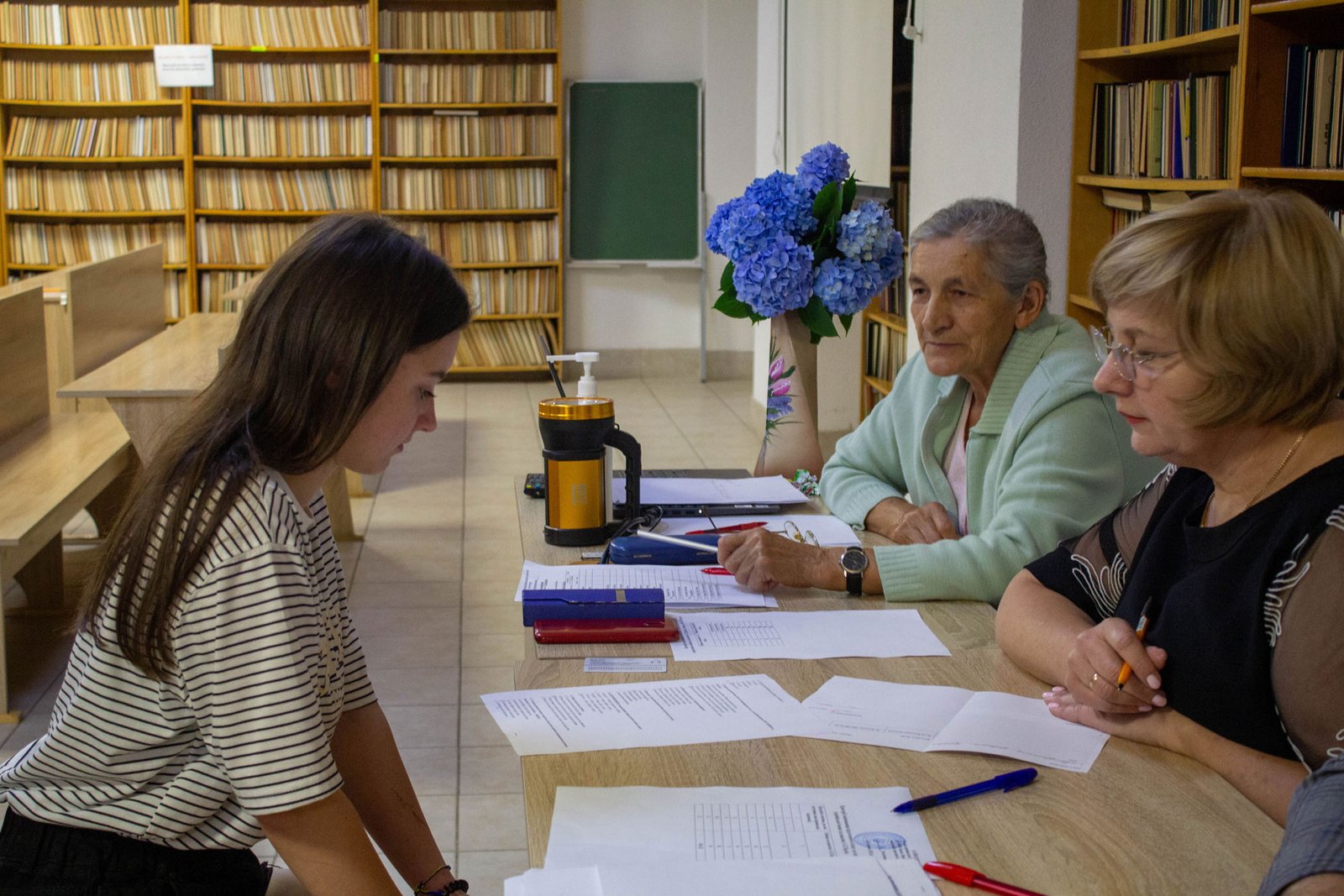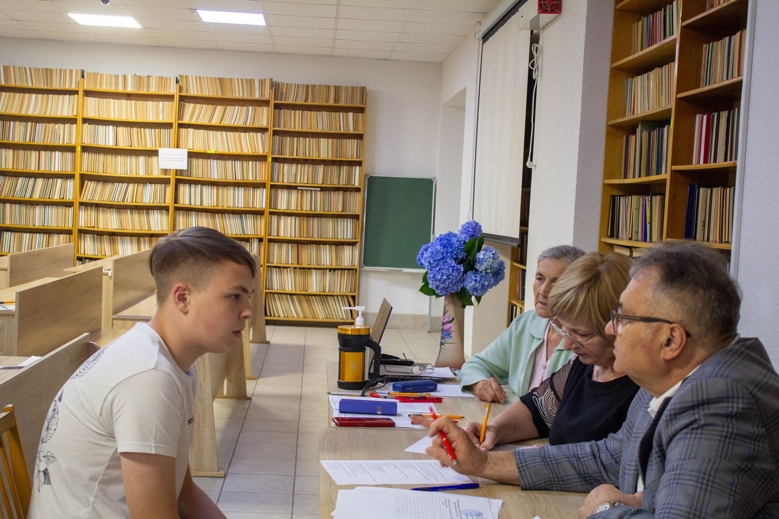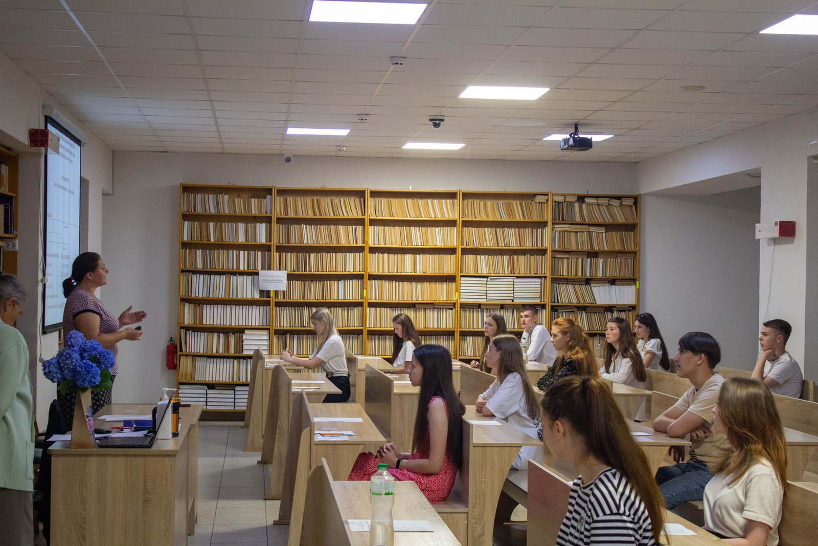 Під час вступної кампанії вихідних нема. Щодня – чи то будній день, чи вихідний – по дві групи студентів приходять у коледж на співбесіду з української мови – таке вступне випробування в ІФМФК у цьому році. 16 липня співбесіду мали 5, 6 групи абітурієнтів.