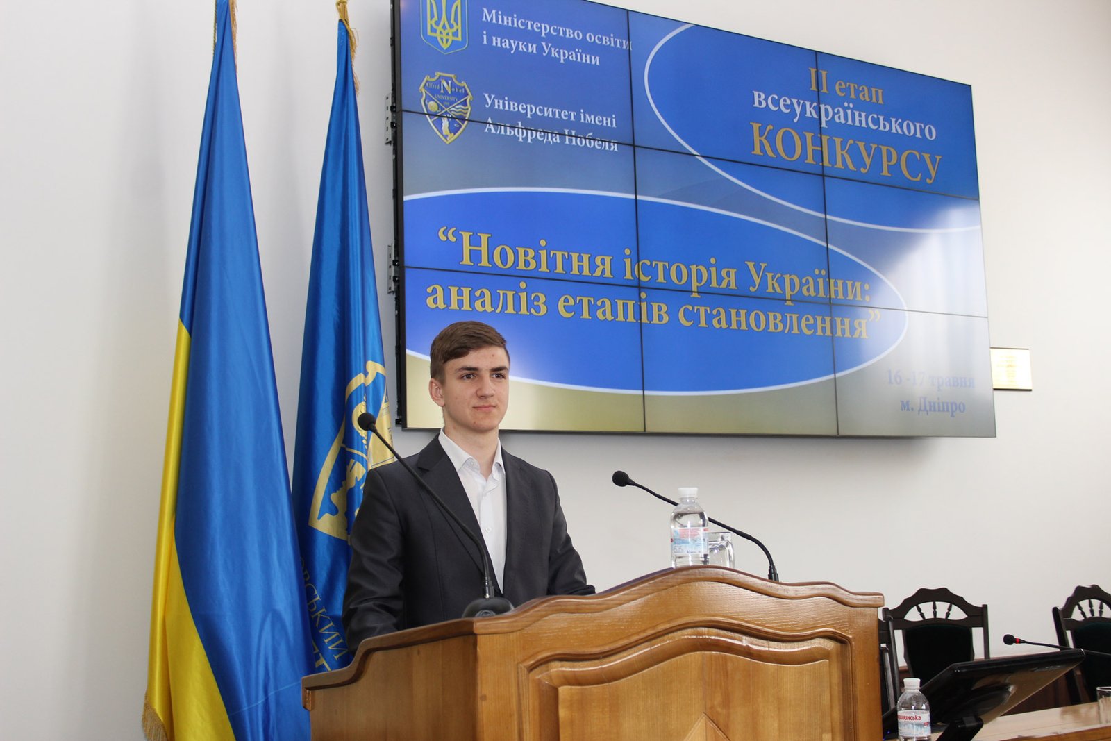 З 16-18 травня 2019 р. на базі Університету імені Альфреда Нобеля (м. Дніпро) Інститутом модернізації змісту освіти проводився заключний етап Всеукраїнського конкурсу дослідницьких робіт школярів та студентів до 28-ї річниці незалежності України “Новітня історія України: аналіз етапів становлення”.