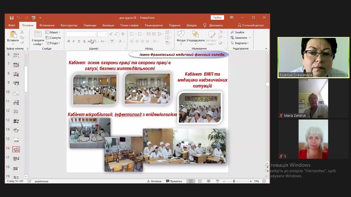 На базі відділення післядипломної освітиКЗФПО «Івано-Франківський медичний фаховий коледж» ІФОР (вул. Гетьмана Мазепи, 165) відбулися чергові заняття для слухачів циклів підвищення кваліфікації – медичних сестер палат новонароджених,санітарних фельдшерів, рентгенлаборантів. Проходило воно онлайн на платформі ZOOM.