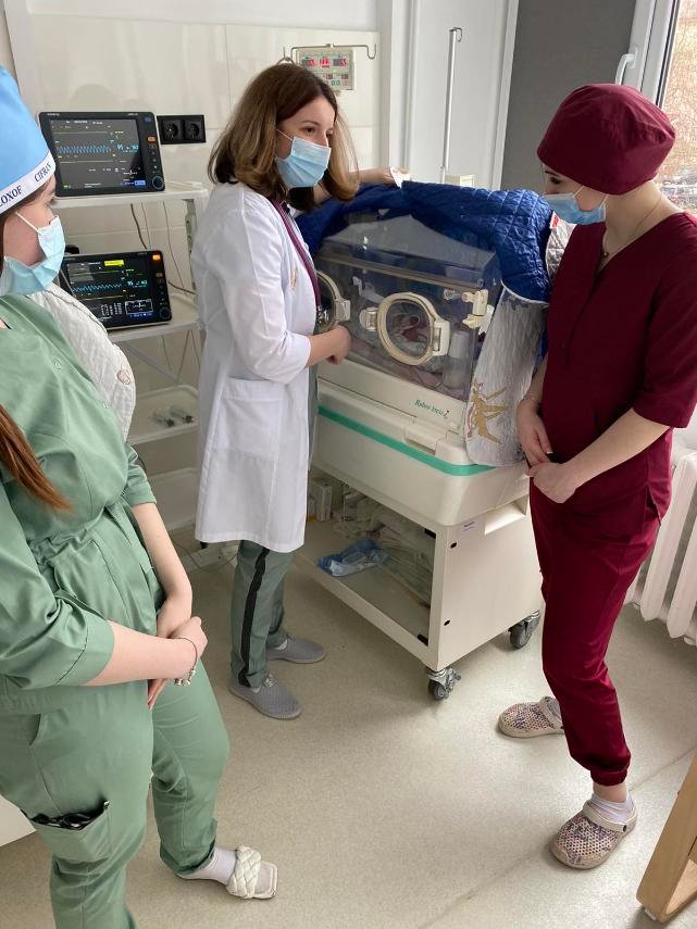 У відділенні інтенсивної терапії новонароджених студенти змогли побачити сучасне обладнання, та під керівництвом висококваліфікованого медичного персоналу, ознайомитися з роботою сучасних моніторів, апаратів штучної вентиляції легень, кювезів, шприцевих насосів, та зігріваючою апаратурою для немовлят.