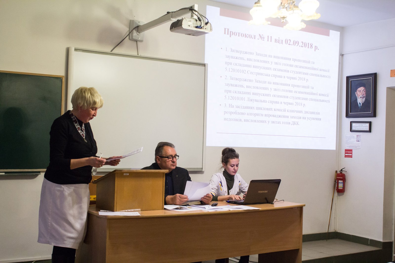 Відповідальний секретар приймальної комісії Гафійчук І.І. ознайомила членів педагогічної ради з правилами прийому на навчання до Івано-Франківського базового медичного коледжу у 2020 році.