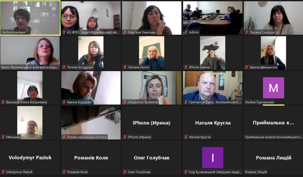 30 листопада 2023 року завідувачі відділень КЗ ФПО «Івано-Франківський медичний фаховий коледж» ІФОР (вул. Гетьмана Мазепи, 165): Олеся СУХОРУЧКО, Мирослава ВАЦЕБА, Тетяна БАСАРАБА та Галина БАСАРАБ, а також заступниця директора з навчально-методичної роботи Ірина ГАФІЙЧУК прийняли участь в онлайн-засіданні методичного об’єднання завідувачів відділень денної та заочної форм навчання закладів фахової передвищої освіти Івано-Франківської обласної ради.