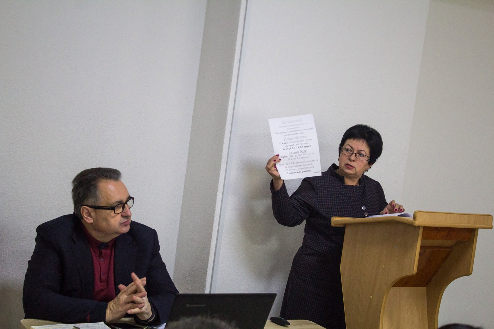 Грунтовним був виступ заступника директора з виховної роботи Мальованчук Н.В, яка проаналізувала роботу керівників груп за осінній семестр та заходи по усуненню недоліків. Наголошувалось, що на сьогоднішній день головним завданням керівників груп є надання допомоги студентам у навчанні, громадській діяльності, сприяння розвитку студентського самоврядування, виховання у студентів патріотизму, розвиток їх творчих здібностей та формування організаторських навичок. Було внесено пропозиції щодо оптимізації роботи керівників груп.