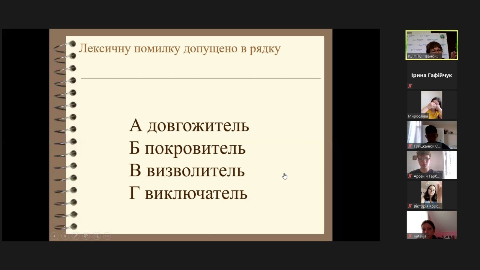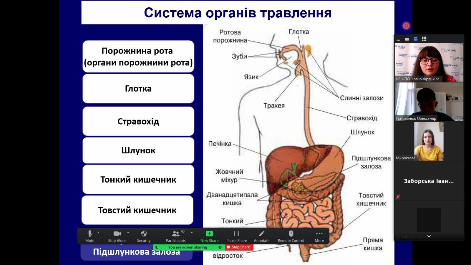 До кожної теми викладачі і біології, і української мови підготували відеопрезентації. Великий ілюстративний матеріал (таблиці, графіки, схеми) допомагає краще зрозуміти те, що пояснює викладач.