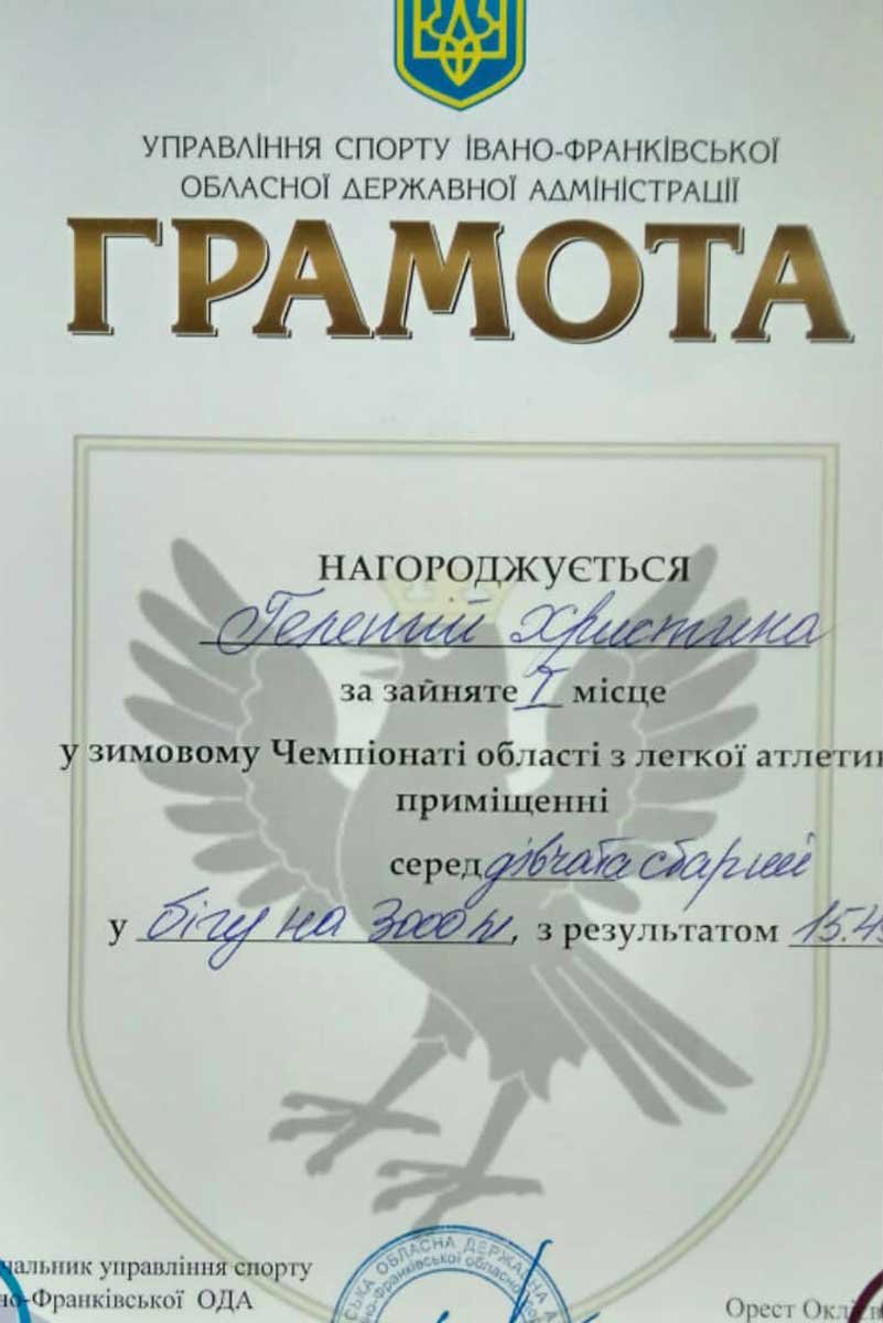 Гелетій Христина виборола І місце в бігу на 3000 м, а Кабанова Марина стала бронзовою призеркою в бігу на 1500м .