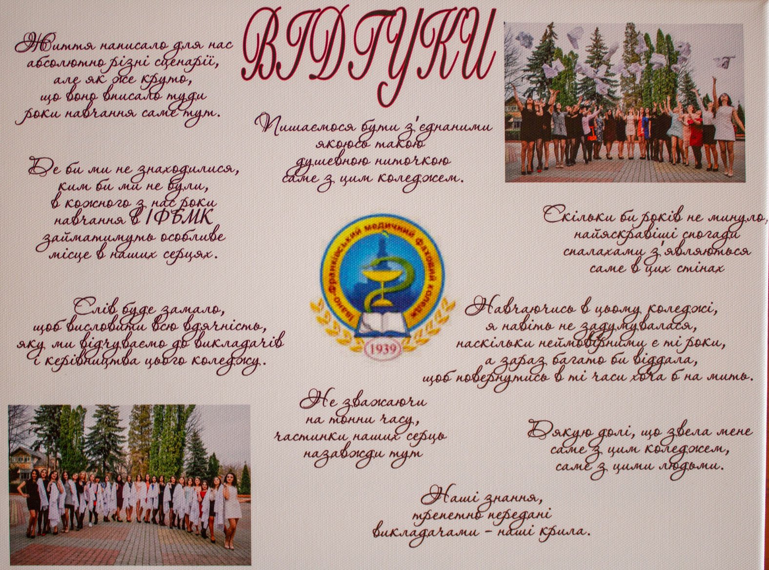 Випускникам 2018-го пощастило: то були роки повноцінного навчання, практики в медичних закладах, цікавого дозвілля, творчих конкурсів і концертів, спортивних турнірів. Вже після їхнього закінчення коледжу був COVID-19 з карантинними обмеженнями, з 24 лютого 2022 року – московсько-українська війна. Втім, всі виклики останніх трьох років не могли не торкнутись кожного з них, як і всіх українців.