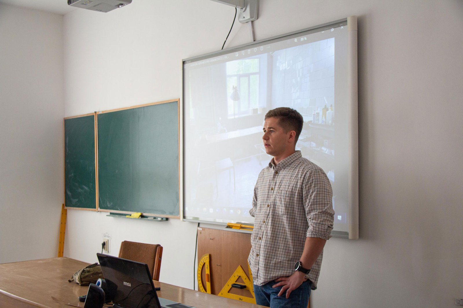Здобувачі освіти ставили запитання, а на завершення зустрічі вручили Богдану Гавенку невеликий подарунок та подякували йому і його побратимам за те, що маємо можливість вчитися і працювати. Вони захищають нас і наше майбутнє.