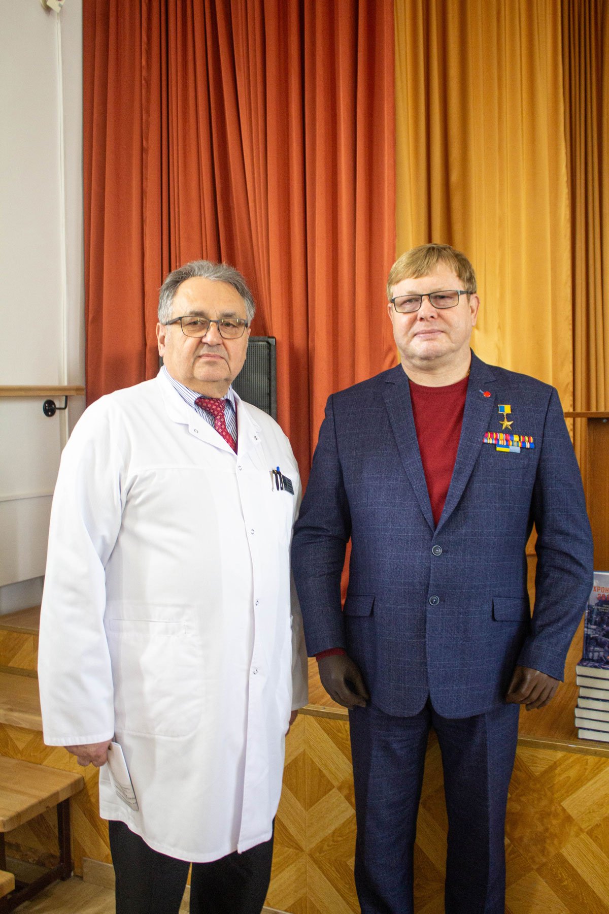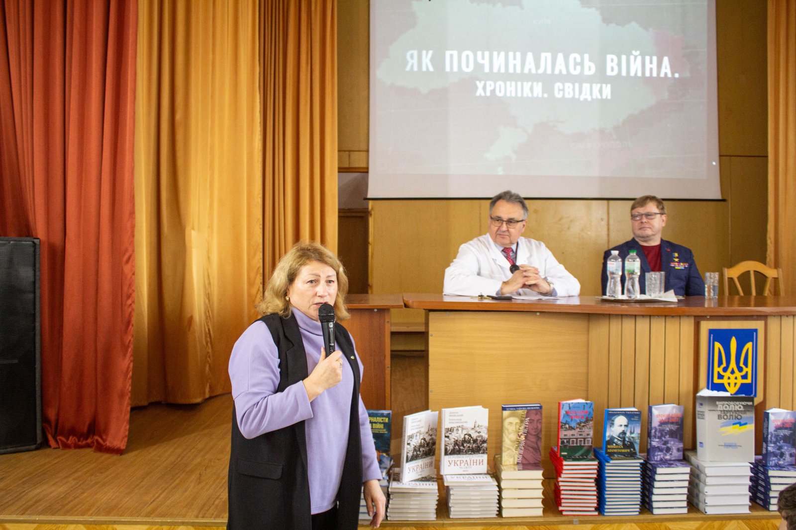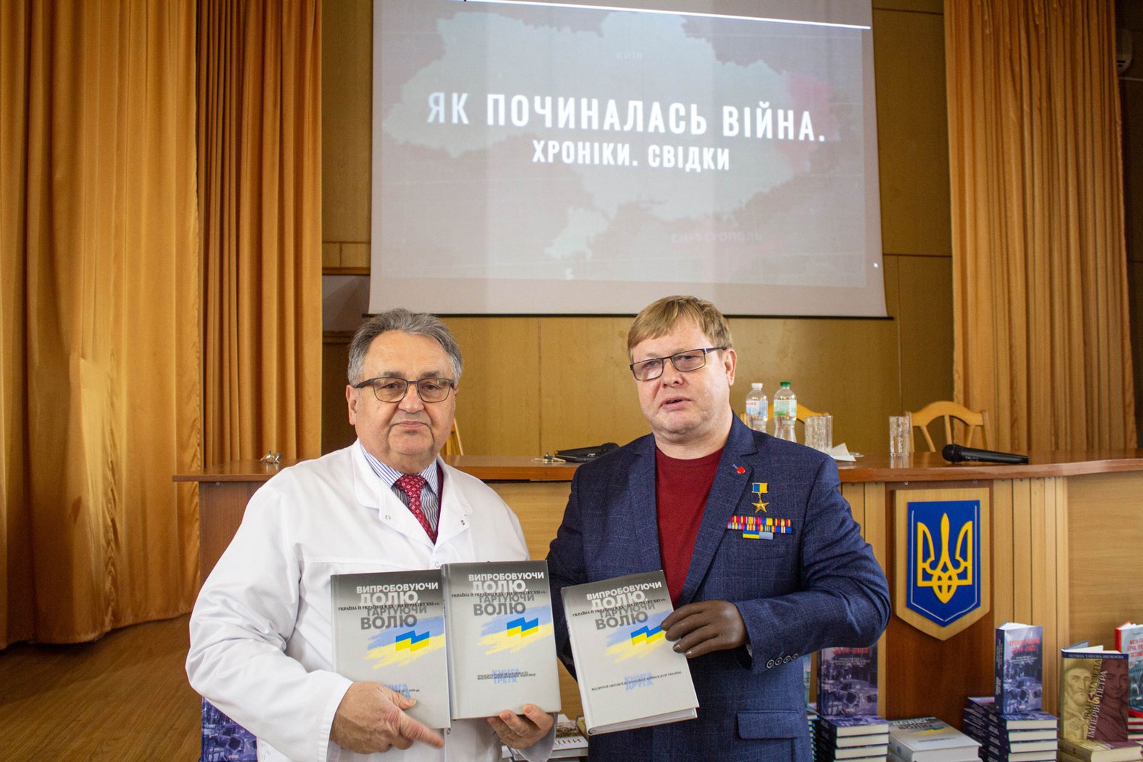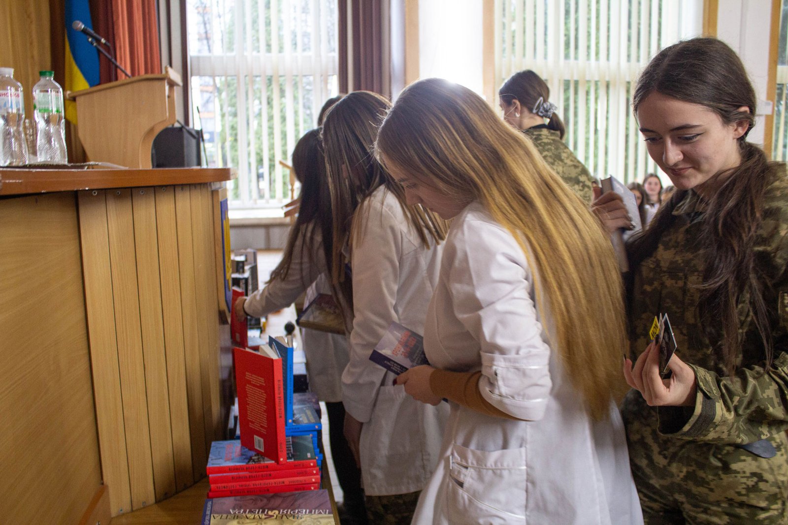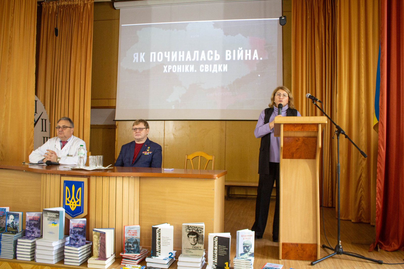 Олена і Володимир Жемчугови привезли із собою та подарували студентам коледжу книги історичного та патріотичного змісту, надруковані державним підприємством «Центр захисту інформаційного простору України» на замовлення Міністерства культури та інформаційної України.