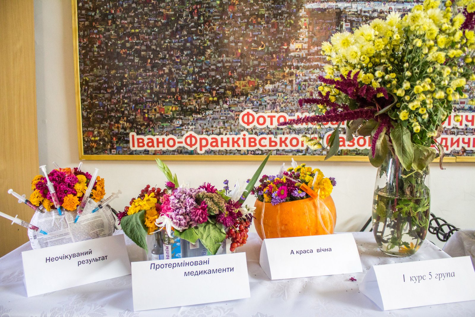 Студенти Івано-Франківського базового медичного коледжу привітали своїх викладачів із Днем працівника освіти виставкою осінніх композицій під назвою «Золота осінь».